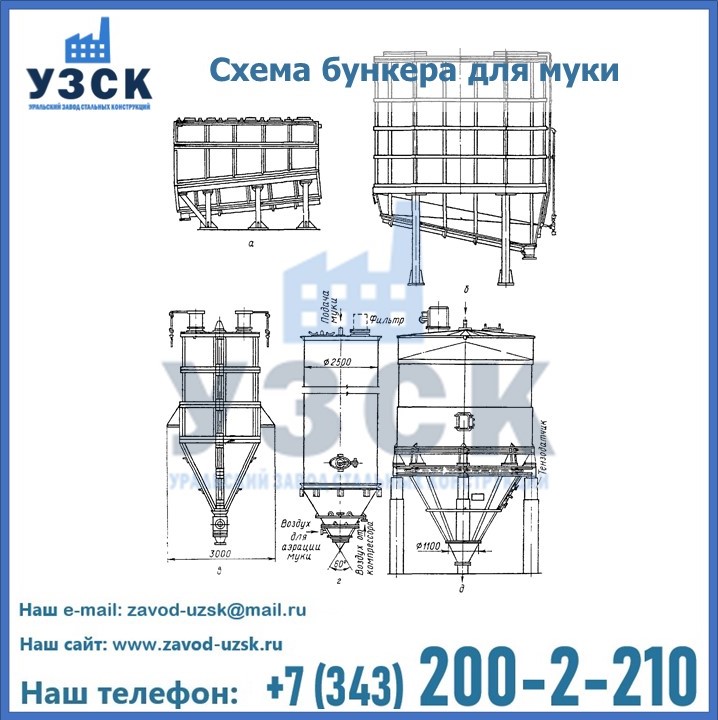 Завод «УЗСК» в Актобе осуществляет проектирование, производство и продажу бункеров для муки. Всю информацию, касающуюся производства, реализации и установки емкостного оборудования можно узнать на нашем сайте или по телефонам, указанным в разделе «КОНТАКТЫ».