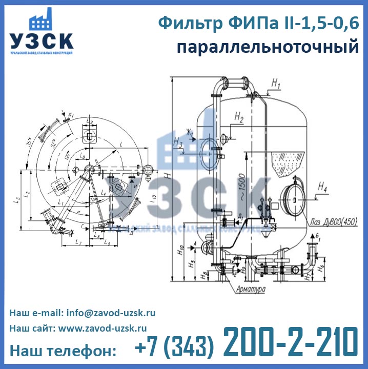 Цены фильтра ФИПа 2 ступени 1,5-0,6 формируются в соответствии со множеством факторов, таких как материальное исполнение, тип распределительных устройств, требуемая комплектация, необходимости доставки и т.д. Для расчета цены фильтров ФИПаII-1,5-0,6 в Актобе обратитесь в отдел продаж Уральского Завода Стальных Конструкций по координатам, указанным в разделе «Контакты».