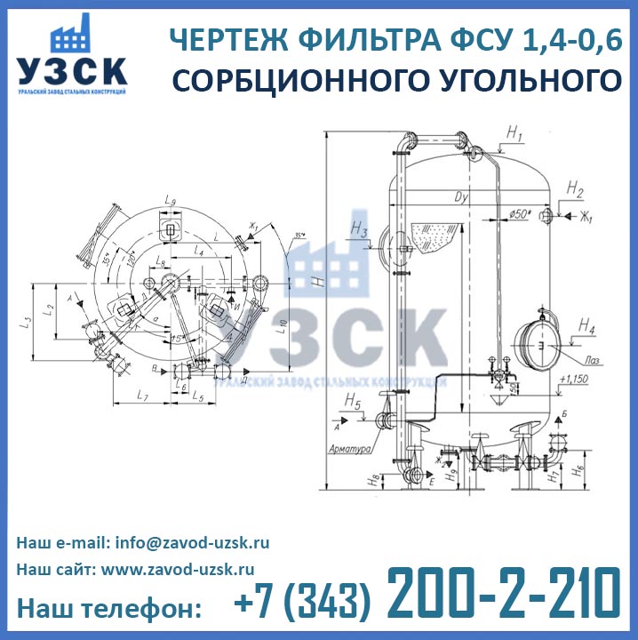 Если вы ищете фильтры ФСУ-1,4-0,6 в Актобе от изготовителя, то Вы на правильном пути! Уральский завод стальных конструкций – непосредственный производитель сорбционных фильтров ФСУ, предлагающий самые выгодные цены на ФСУ-1.4-0.6 в Актобе. По окончании процесса производства угольные фильтры проходят гидравлические испытания пробным давлением 0,9 МПа на аттестованном гидростенде, находящимся в собственности завода УЗСК. Мы гарантируем высокое качество выпускаемой продукции, и в этом уже убедились ведущие предприятия промышленного сектора России и стран ЕАЭС (см. раздел «Наши клиенты»).